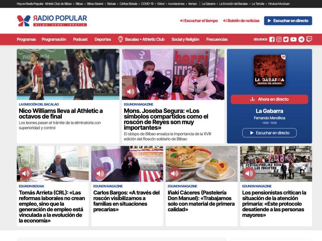 Radio Popular es una radio generalista local, líder en deportes en Bilbao: sin cadenas. Llevaban haciendo podcast desde 1960, pero no lo sabían. Así hicimos la estrategia de transformación digital y desarrollamos la plataforma de audio digital de Radio Popular, para convertir los mejores contenidos locales informativos y deportivos de Bizkaia en un producto digital único y muy especial.